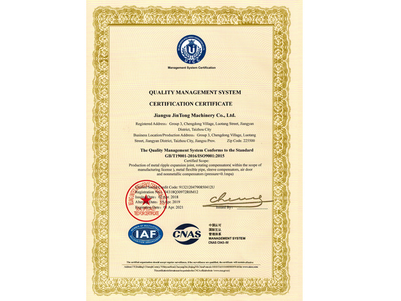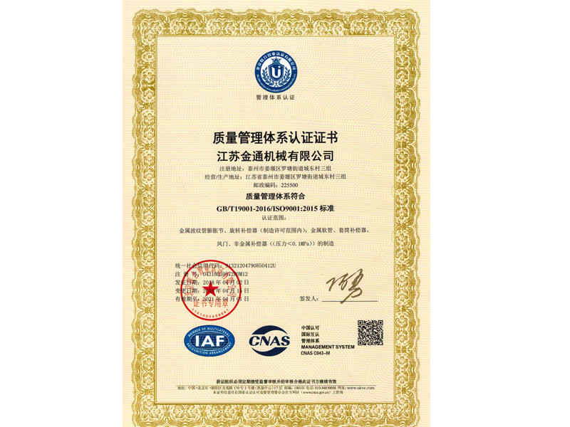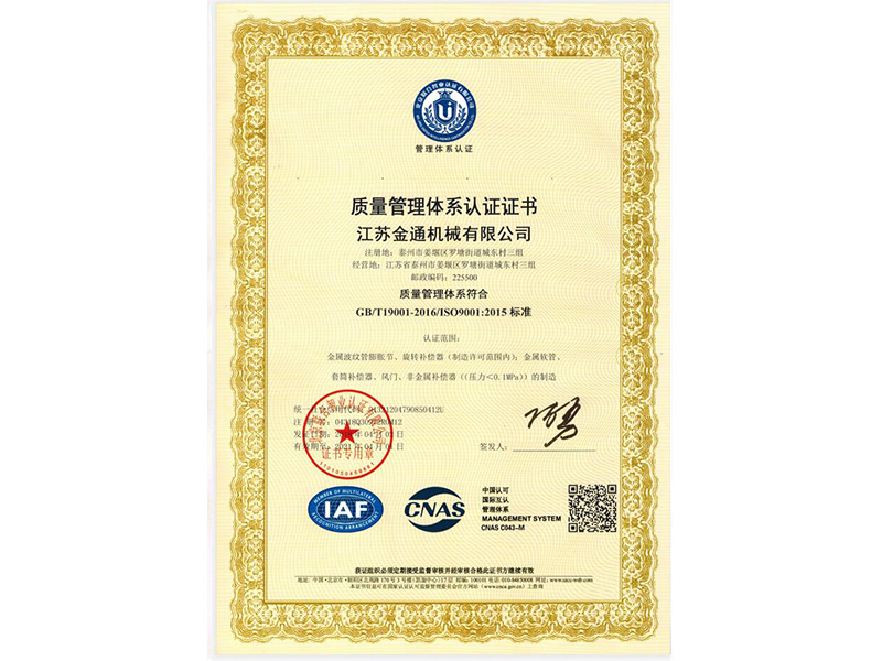 預(yù)硫化焊接式非金屬補(bǔ)償器專(zhuān)利證書(shū)